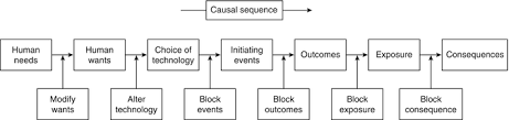 In my search for and development of useful heuristics I was looking for models that started with social needs (outcomes). I fondly redicovered a piece we used “back in the day” (developed by the likes of Kasperson and Kates). I say fondly because it stuck in my mind because of a bemusing typo. It was in the title – “casual” approach – rather than “causal” approach – just one misplaced letter, yet many misplaced meanings.