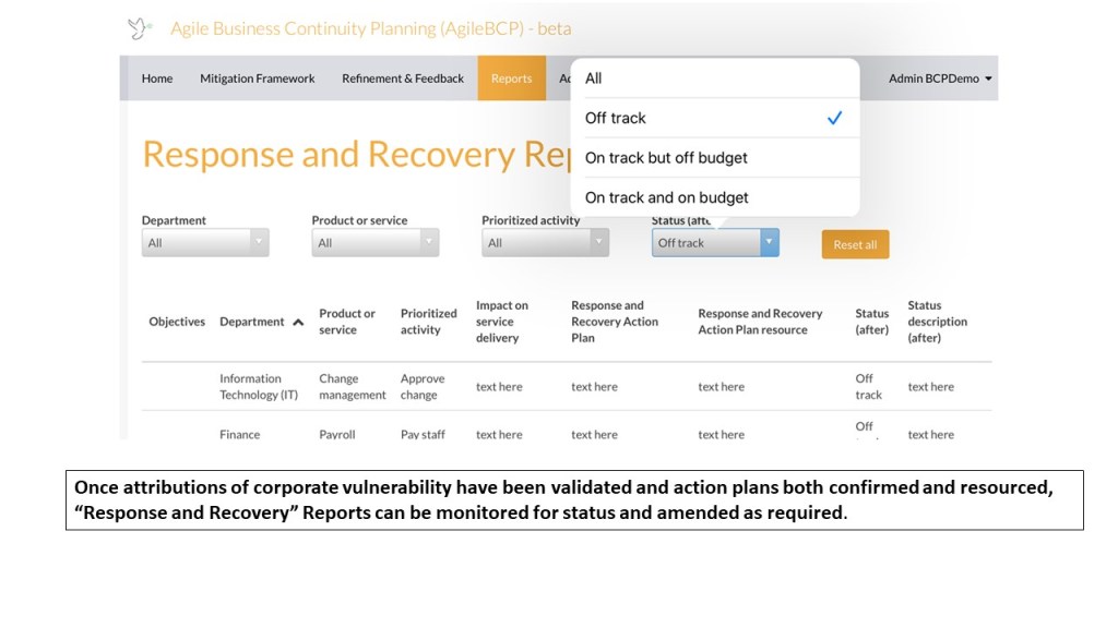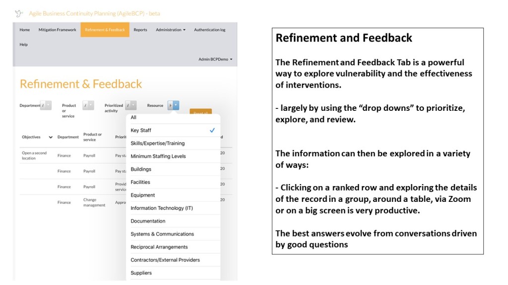 This update outlines some of the key features of our soon to be released “Agile Business Continuity Planning” software. A Platform as a Service (to be offered through AgileBCP Pty Ltd and available at http://www.agilebcp.com)