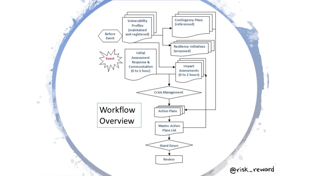 The two workflows actually work hand in glove to form a comprehensive and integrated framework. A framework which characterised by informed decisions to prevent, prepare, respond and recover.