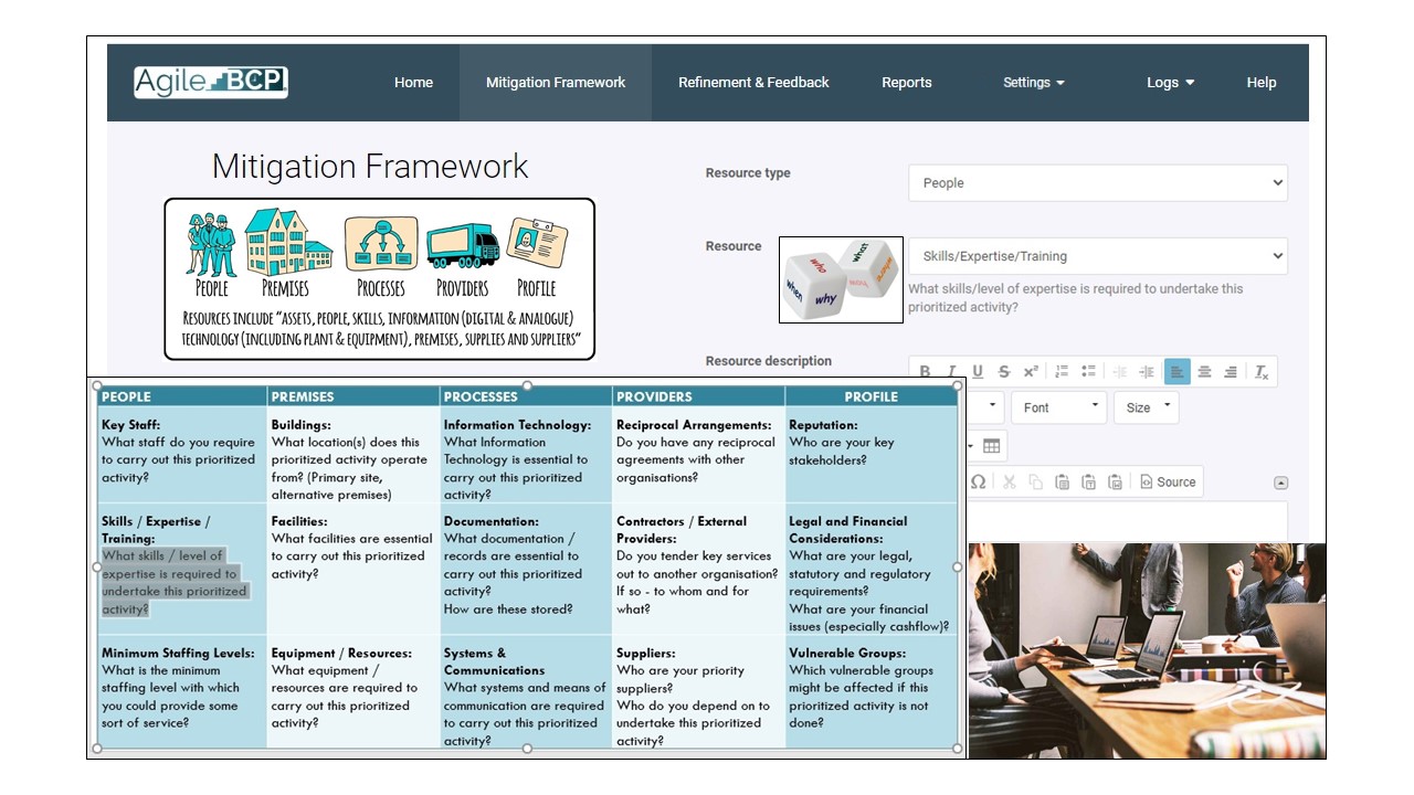 From change management workplace reviews and reimagining future organizational structures, to business continuity and crisis management, this thinking (focusing on necessity and sufficiency) is applied to consider the sets of resources needed for effective activities, supporting products and services which achieve objectives.