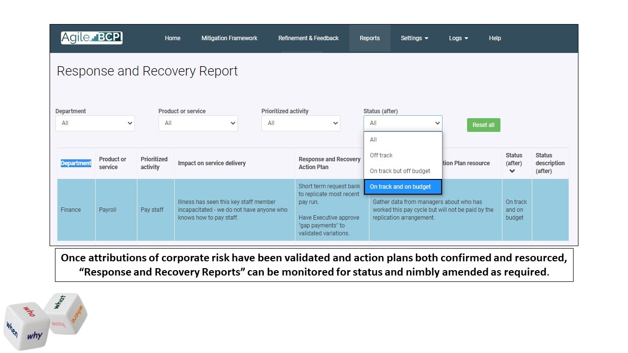 AgileBCP® enables you develop and apply your own thresholds – to reflect requirements of your context.
