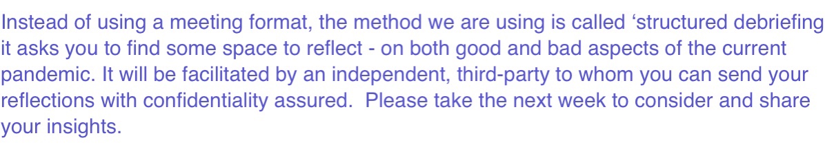 Debriefing processes involve difficult conversations. They cover issues which involve uncertainty, can be notoriously “political”, and are often sensitive. Having processes which can be facilitated to enhance independence and confidentiality is important. This is a function of the methodology and the integrity of the independent facilitator.