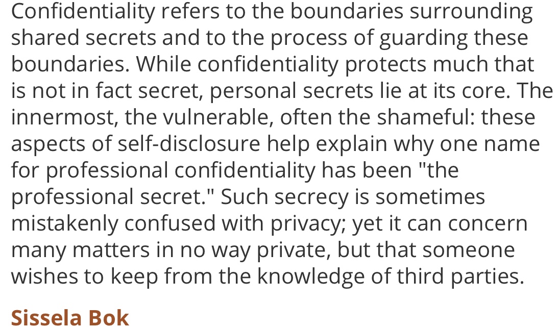 Confidentiality if a fundamental human trait – it is given – and in turn, respected.
