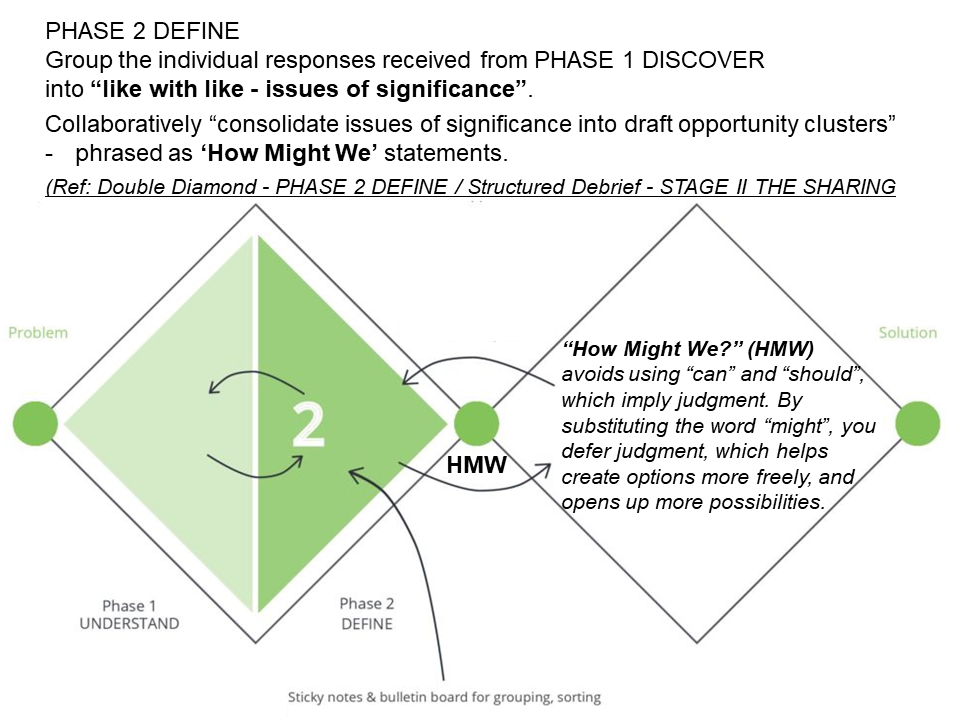“Understand the problem” moves towards solutions when it focuses on the agreed key elements from Phase 1. The focus is on the things which will make a difference.