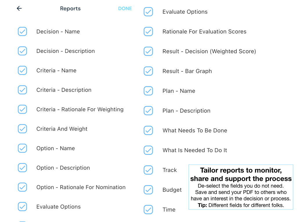TIP – A lazy way to not include a criterion in graphs and reports is to set the weighting for it to zero.