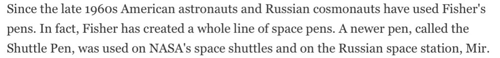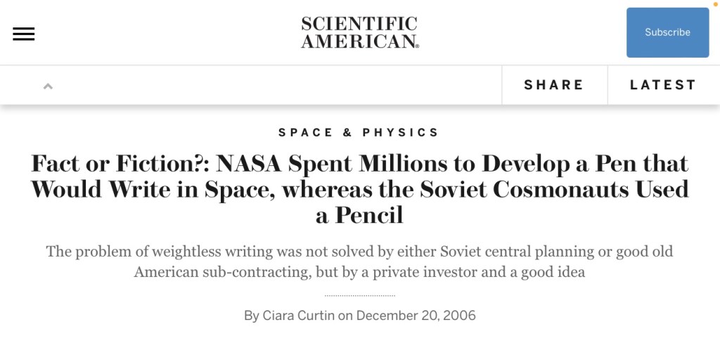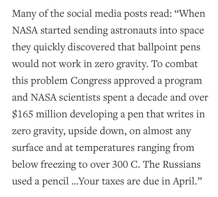 The biro and pencil – urban myth 101 but also a useful story