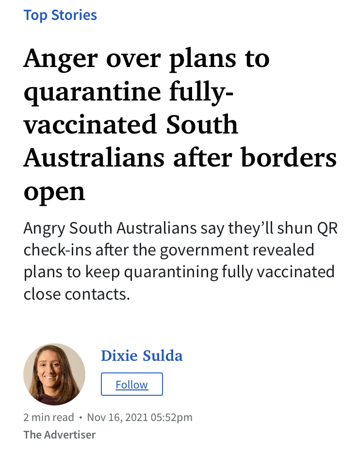 It is the government of South Australia which is playing out a Covid example.