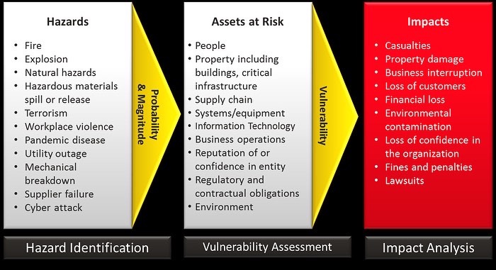 The internationally respected Standard on Continuity, Emergency, and Crisis Management (NFPA 1600) defines risk as a measure of the probability and severity of adverse effects that result from exposure to a hazard.