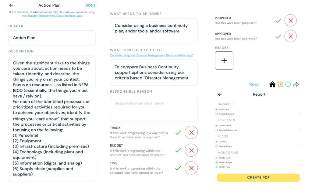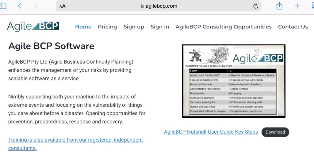 Includes a link to our free Disaster Management Decision Maker app with the note “Select an appropriate business continuity software tool to support your resilience” under the image as a hyperlink.