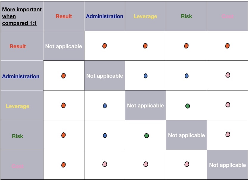 (iv) Criteria Weightings – your agreed default settings (positive or negative – from minus nine to plus nine).