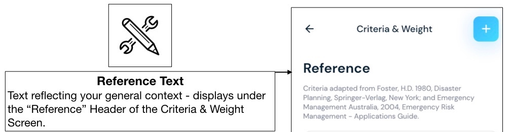 2. Reference (Text) – a description of your context – to be inserted under the edited “Reference” Header of the Criteria & Weight Screen.