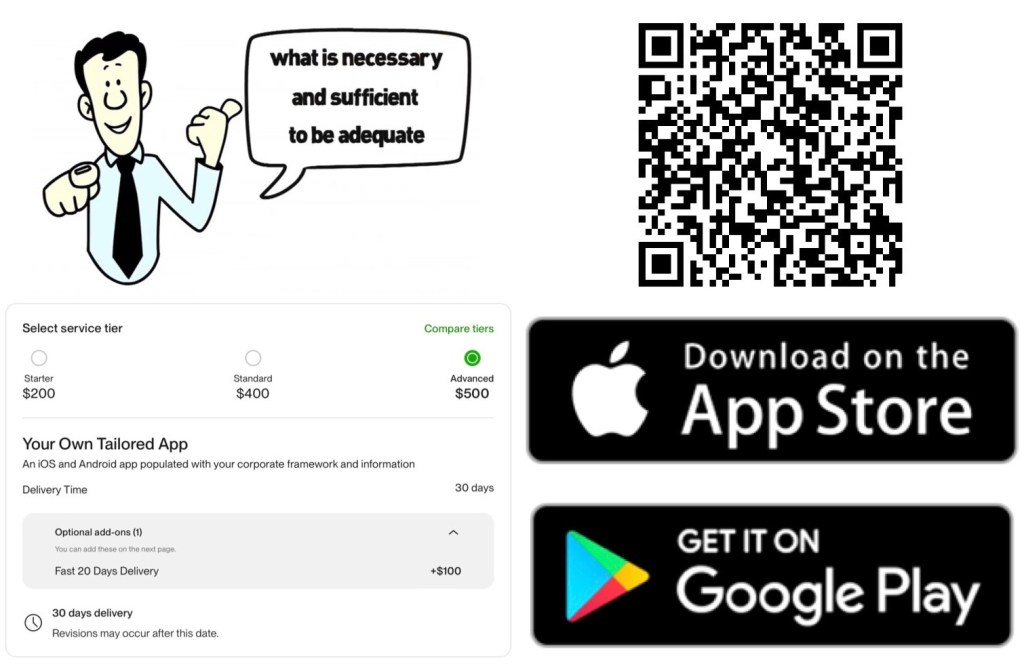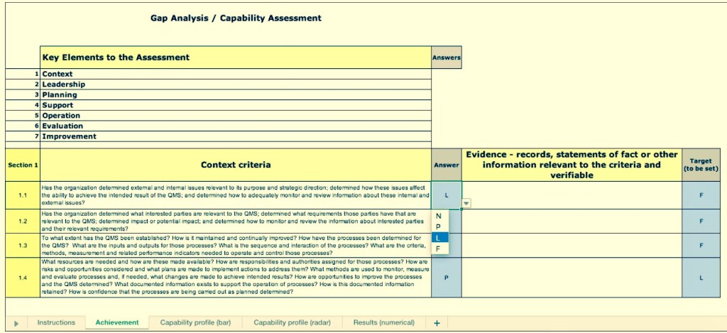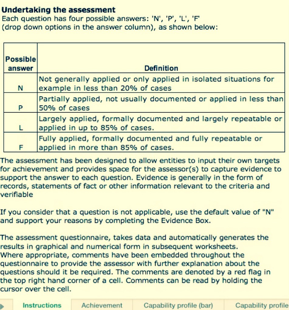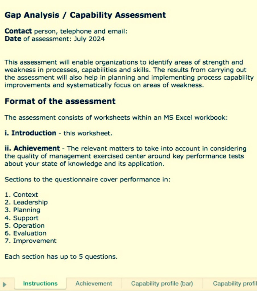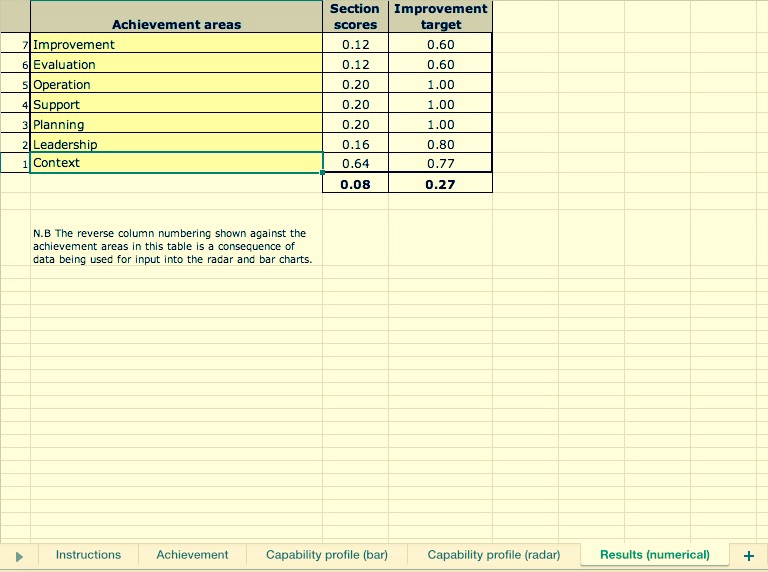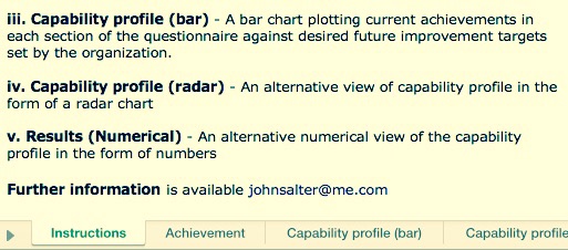 Our Starter Tier offers up to 5 Elements or Sections, each with up to 5 performance criteria; and our Top Tier takes the form of the Excel Spreadsheet offered in the Standard Tier plus a tailored Apple and Android App tailored to your Elements and Criteria.