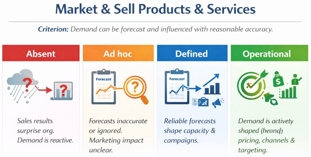 Sales results regularly surprise the organisation. Demand is largely reactive and poorly understood.