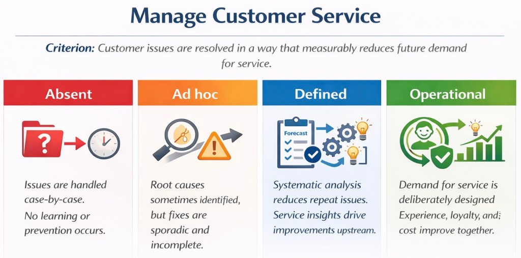 Demand for service is deliberately designed down. Experience, loyalty, and cost improve together.