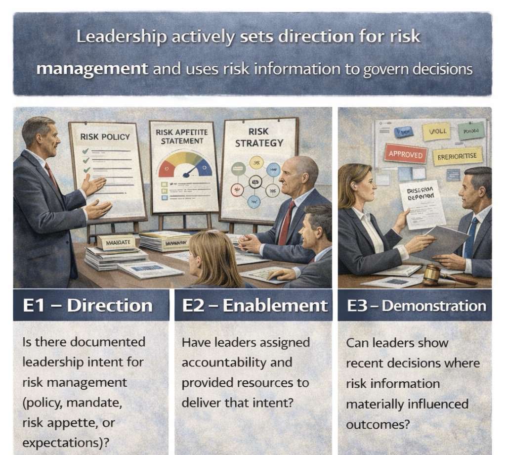 Leadership actively sets direction for risk management and uses risk information to govern decisions.