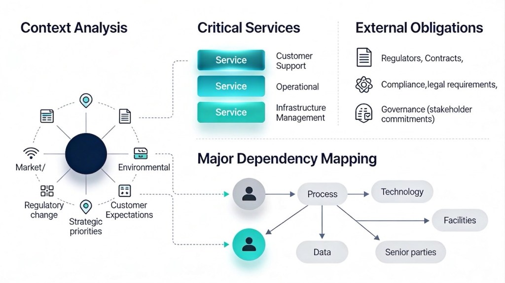 - This in turn drives more emphasis on end‑to‑end mapping, third‑party dependencies, and “severe but plausible” scenario testing, which are less prominent in traditional RTO‑centric BCM.[9][2][3][4][1]