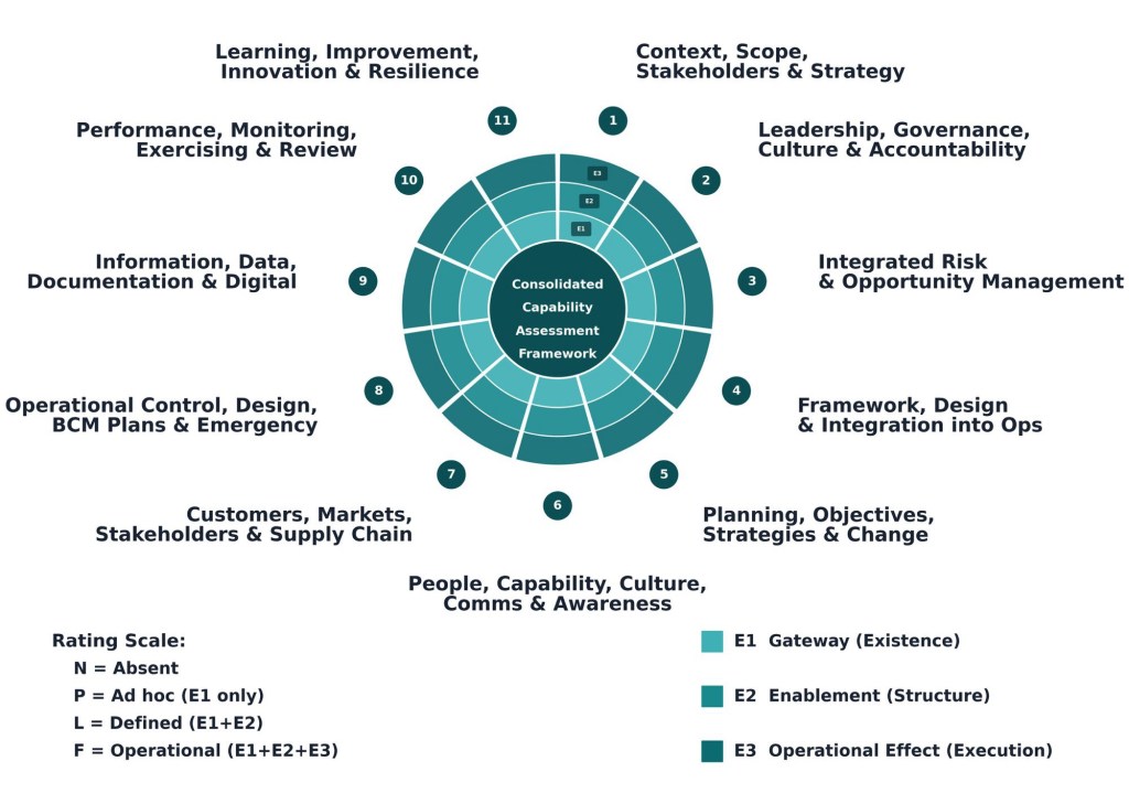 This assessment provides a concise, evidence‑based view of how well the organisation is set up to run, grow, and handle shocks, not just how much documentation it has. It combines a practical business lens with proven public‑sector and private‑sector capability models.
