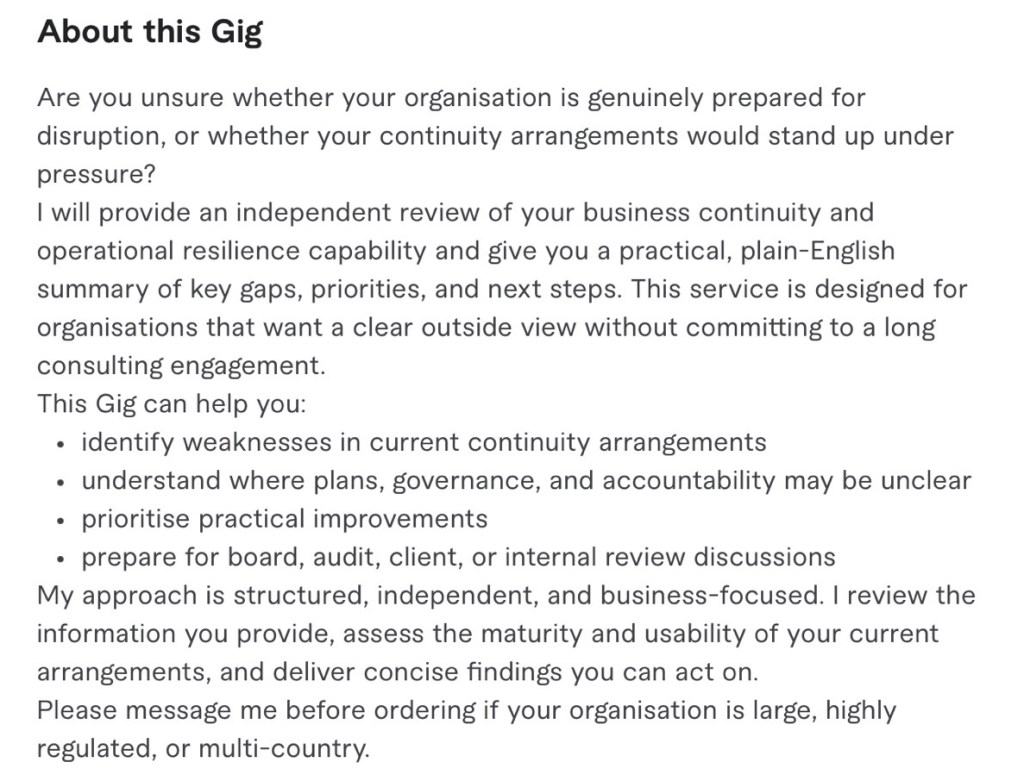 - Roles & capability: there is no clear, organisation‑wide view of OR roles, competencies, and training/awareness expectations (e.g. crisis leaders, service owners, vendor resilience leads). People may not know what is expected of them in a disruption.
