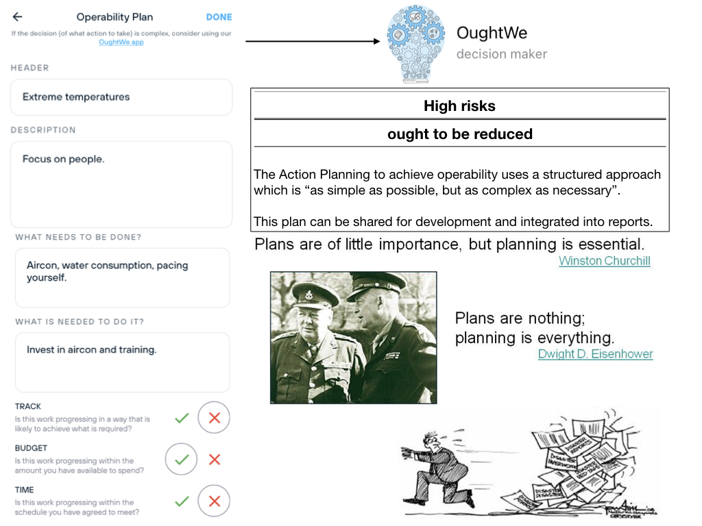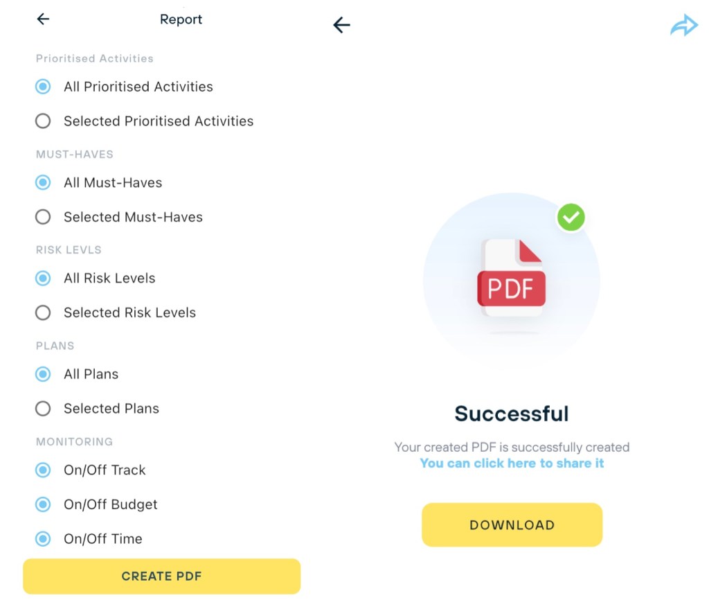Communication and collaboration are fundamental to successful management. Especially the management of risk. Reports are generated based on being able to select from combinations of any – or all – of the data fields as outlined in the Menu below. These can be generated as PDF documents – to be shared and communicated as required. It is interesting to note that during the planning process – both before and during a disaster – users will frequently send screenshots to others using to arrow icon displayed at the bottom right of many screens.