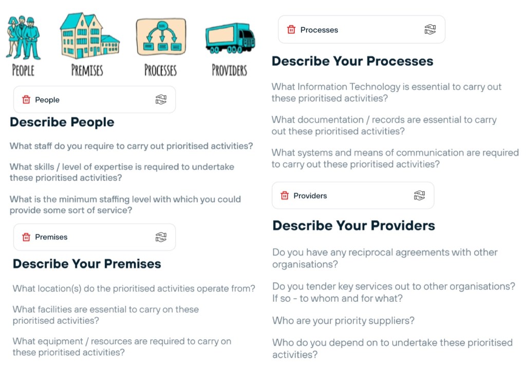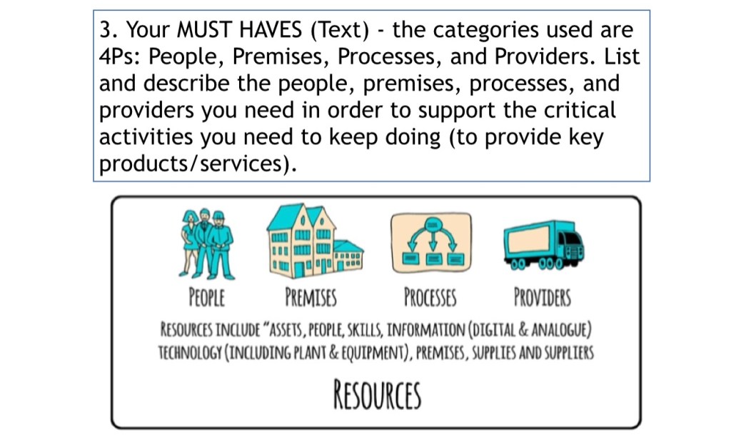 Resources – as listed in NFPA 1600 (essentially, the things you must have / rely on)
