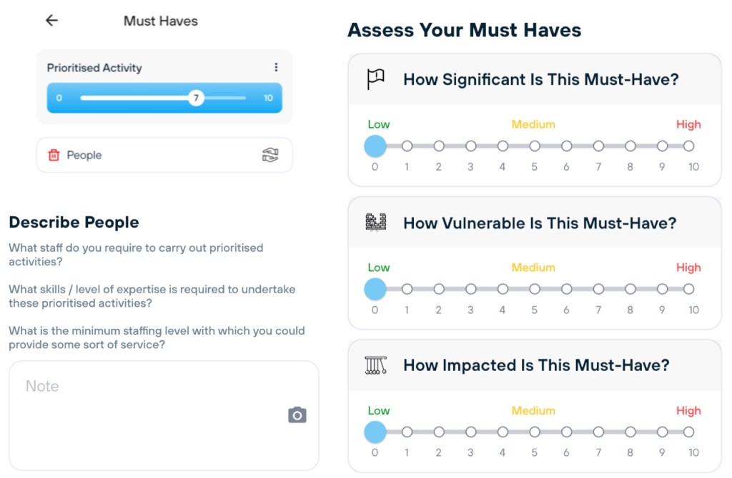 Describe the things you care about – things you “must have”, and score their vulnerability before a disaster.
