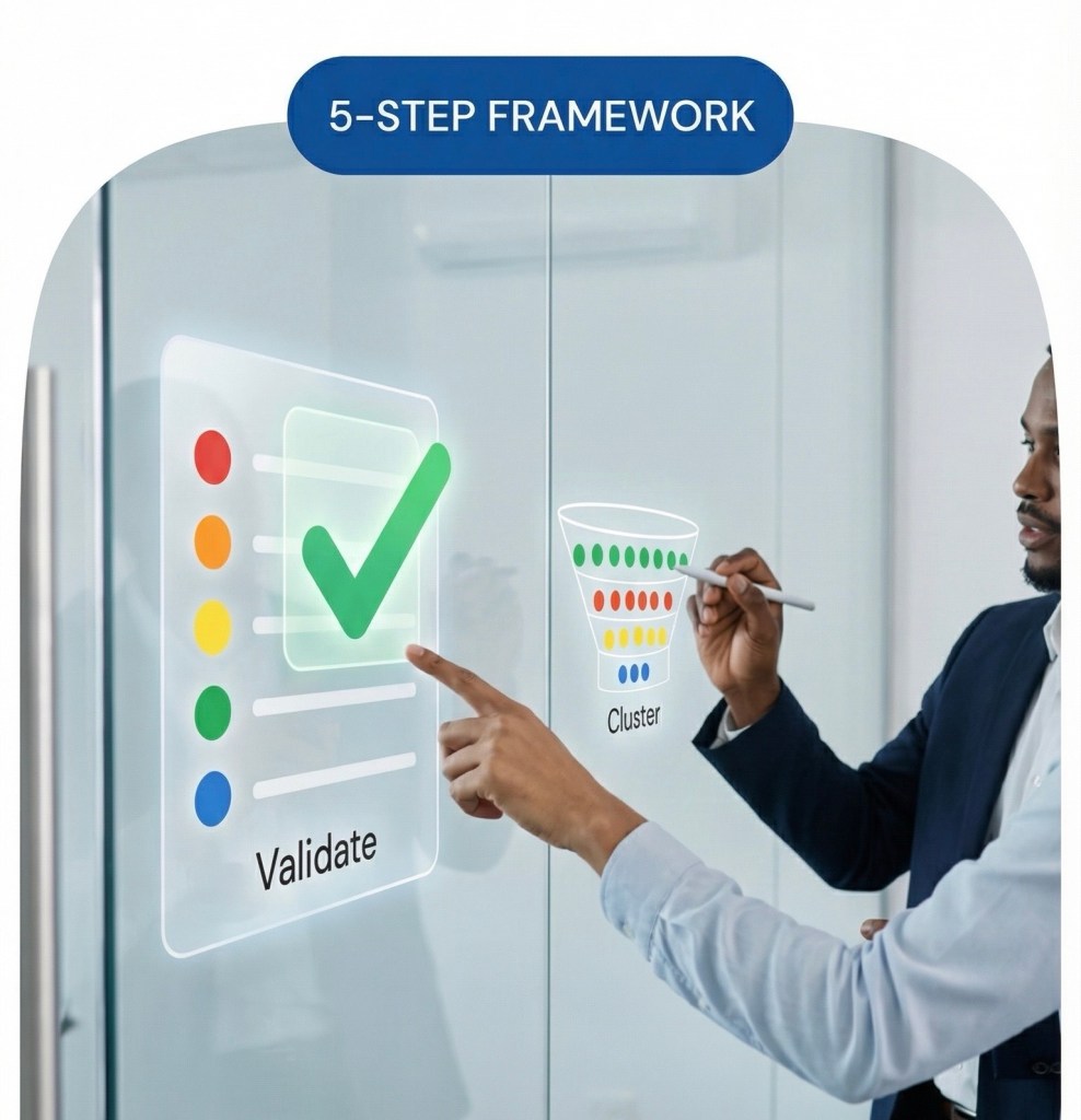 Aggregate and visualise results by capability, theme, and unit to reveal systemic patterns. “Clustering and Consolidation” becomes more analytical. Individual inputs are aggregated and clustered by capability, business unit, and strategic theme to surface patterns, asymmetries, and systemic strengths or vulnerabilities. Visuals such as capability maps or heat‑maps are often produced here.